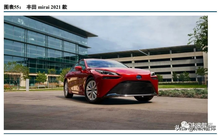 产品和应用方面,全球、我国都有相当程度进展。全球燃料电池巨擘丰田汽车的 Mirai2021 版实现了单次加氢续航 1000km 的标志性事件,进一步验证了燃料 电池车辆在续航方面的优势。鉴于动力性、成本和加氢站,以及竞争性技术路线的现状及预期等方面原因,我 们对燃料电池乘用车的大规模推广保持谨慎态度。2030-2035 年间 80 万辆-100 万辆燃料电池车辆大概率以商用 车为主。