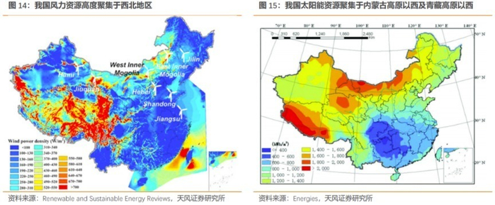 以风光电为代表的新能源资源有较强的地域分布差异性,显著与高能源需求地区存在空间错配。我国风光资源主要分布于地势第一级阶梯,其中优质风力资源集中于天山西北麓、昆仑山西麓、青藏高原东部、横断山脉、内蒙古高原南侧等地区,优质太阳能资源聚集于喜马拉雅山脉东北麓、青藏高原东北部、内蒙古高原北部等地区,而我国用电需求高地大致位于华东一带,以长三角、珠三角、环渤海、川渝经济带四大城市群为核心高耗能区域,均处在地势第三级阶梯,推进新能源建设存在风光电资源与用电需求空间错配的矛盾。