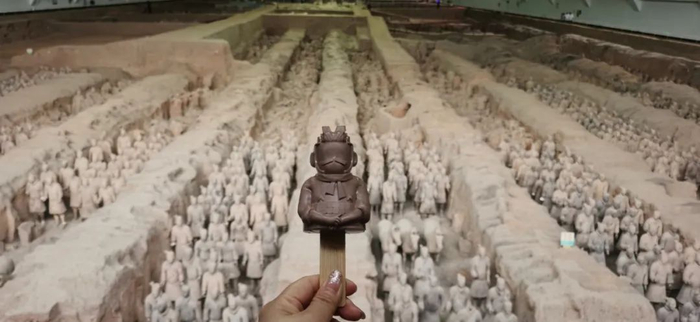 再比如,涉及人物形象时,不能做得太写实。因此为兵马俑设计文创雪糕时,郑奥南专程去了一趟西安,从多角度重新观察兵马俑细部。最终,他为千人千面的兵马俑设计了无脸的形象——用留白的形式,既避免过于逼真,又为游客留足了想象空间。