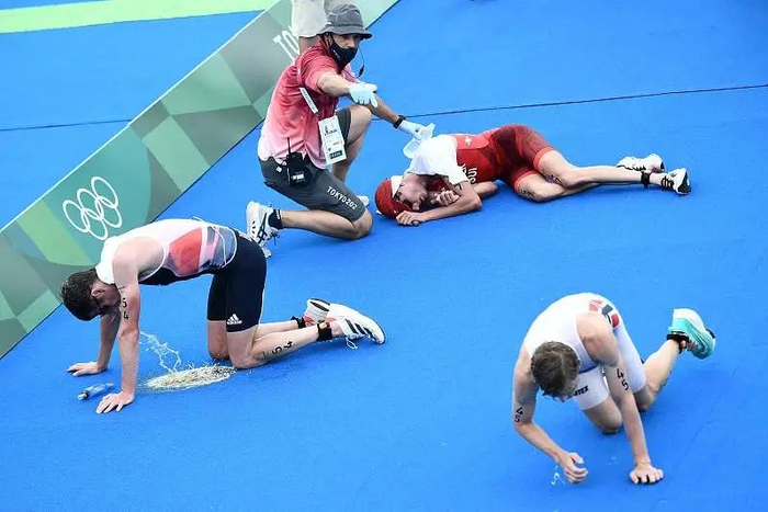 为了抵抗26日的高温,奥组委将铁人三项的比赛提前到了早上6点30分,可依旧造成了运动员不适:早上8点40比赛结束时,台场海滨公园的气温已经达到了快30摄氏度,27岁的挪威选手克里斯蒂安·布鲁门菲尔特(Kristian Blummenfelt)在完成比赛后便呕吐并晕倒,随后不少运动员也相继倒下。另外,沙滩排球项目也有不少选手表示“沙子太热了”。