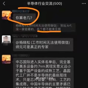 近日,中芯国际光刻技术负责人杨晓松与方正证券某分析师在一个微信群内发生分歧,让本就火热的半导体圈又增添了一分热度。