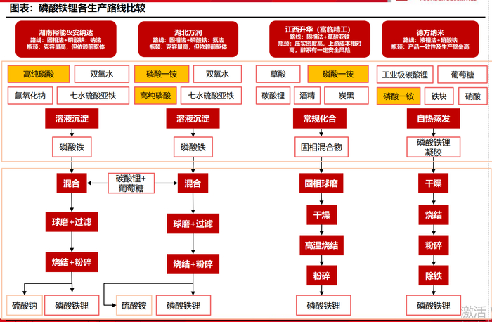 磷酸铁锂的制备主要有固相法和液相法,固相法最为成熟和应用最广,液相法工艺难度大,目前仅有德方纳米(300769.SZ)实现了规模化生产。