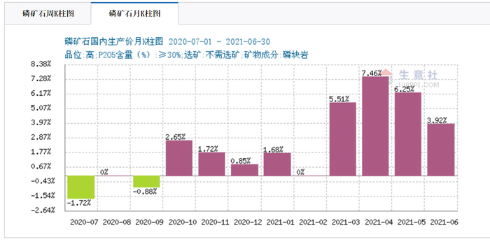 至于磷矿石的报价,生意社显示,7月30日有公司28%品位的磷矿石报价490元/吨,同一家公司在2020年9月底时的报价为300元/吨。