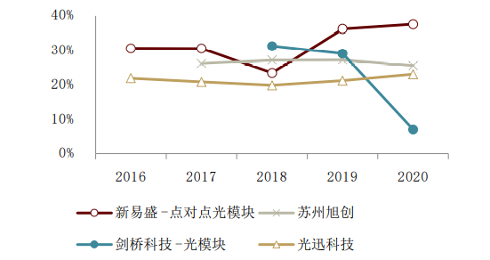 图表:可比公司光模块业务毛利率比较