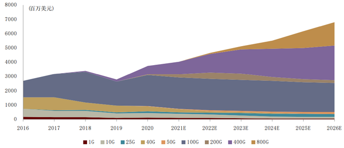 注:800G光模块CAGR为2022-26年