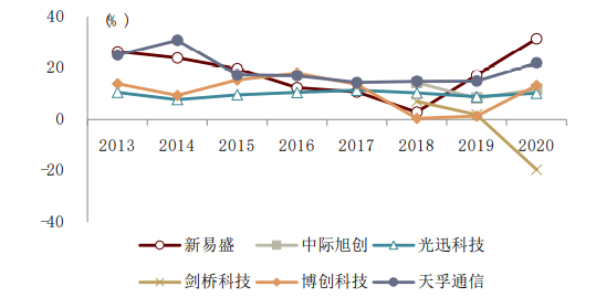 我们认为,数通市场和电信市场的需求均存在周期性与成长性的叠加,但数通市场的成长性更明显,而电信市场周期性更显著。数通市场的成长性来源于互联网巨头为支撑业务发展的数据中心建设需求;周期性来自于互联网客户的库存周期。电信市场需求增长更多受到通信技术迭代带来的网络新建需求,而通信技术迭代及每一代的基础设施建设,本身就存在较长的周期。