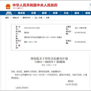 (观察者网讯)8月3日,国务院印发《全民健身计划(2021—2025年)》(下称:《计划》),就今后一个时期促进全民健身更高水平发展,更好满足人民群众的健身和健康需求作出部署。