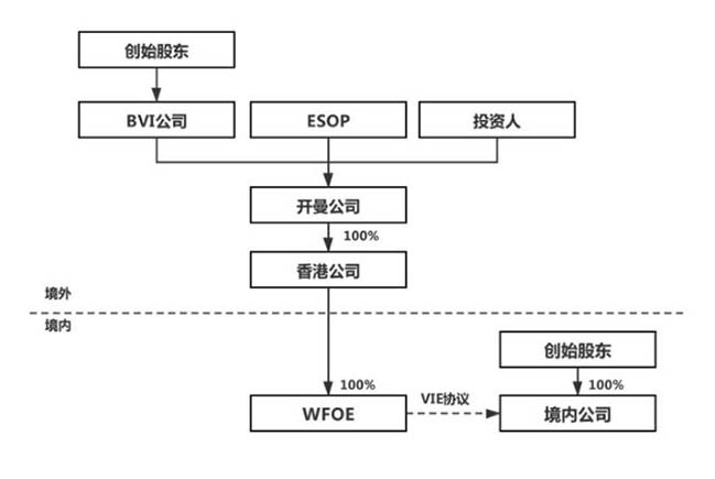 VIE(Variable interest entity,可变利益实体)结构,是指境外上市实体与境内运营实体相分离,境外上市实体不通过股权方式,而是通过一系列协议完全控制境内运营实体的经营活动和利润。