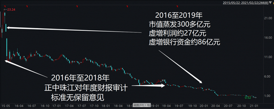 其一,宜华生活在2016至2019年4年间,通过虚构销售业务、虚增销售额等方式虚增利润约27亿元;通过伪造银行单据、不记账或虚假记账等方式,虚增银行资金86亿余元。2016年、2017年和2018年,正中珠江为宜华生活的财务报表出具了标准无保留的审计意见。