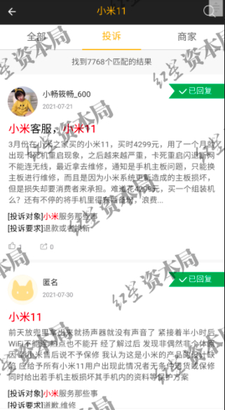 某投诉平台用户反映小米11手机问题