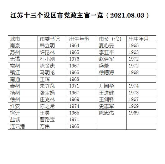 还有泰州,泰州市委书记朱立凡出生于1971年,新任泰州市委副书记、代市长万闻华出生于1974年。万闻华是由连云港市委副书记跨市调任泰州,此前曾任共青团江苏省委书记。