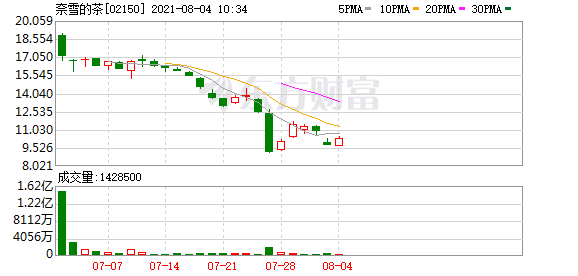 我们再来看看7月底的行情,奈雪02150上市后单边跌,7月下旬的港股大跌行情里毫不含糊,股价最低砸到9.1港币/股。再来看看它的总市值,没错,156亿港币。和6月份的瑞幸持平了。