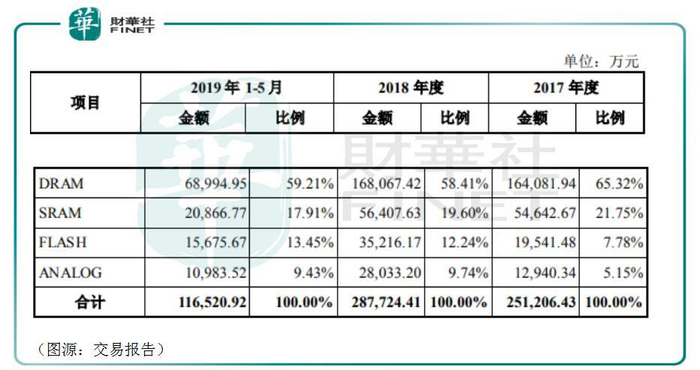 根据第三方机构 IHS iSuppli 统计,2018年全年北京矽成DRAM 和 SRAM 产品收入在全球市场中分别位居第七位和第二位。2019年前五个月,北京北京矽成录得收入11.65亿元,其中DRAM、SRAM和FLASH芯片分别占59%、18%及13%。