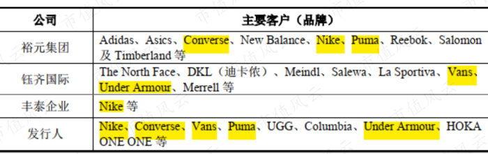 这前五大客户分别是:Nike、VF、Deckers、Puma和Columbia,除此之外,华利集团还将Under Armour 列为重要客户。