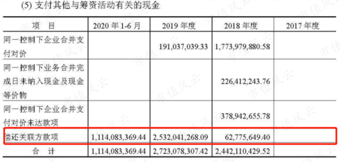 这些钱最终在现金流量表以偿还关联方款项的形式支付,加起超过37亿。而华利集团账面增加的短期借款主要是为了偿还这些借款及满足日常营运。