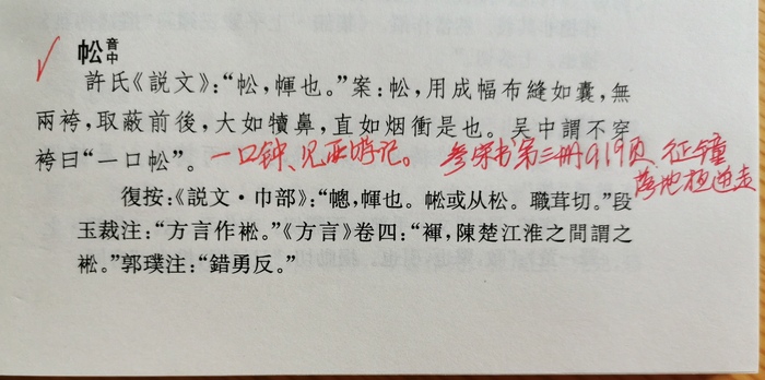 其实作“披袴后裆”的是《北史》,《魏书》作“被”字,“披”“被”虽可通,但毕竟一字之差,错了出处。《汉语大词典》第三册933页“征钟”条,即据俞氏书解之,云:“衷衣,贴身小裤。”也是错的,因为衷衣并不指裤,并且那时的裤,也还只是胫衣,而不与裆连,与今之缝裆裤大别。这是不明古制,想当然的解释。俞氏所云“褫衷衣落下”,是指古人如厕大遗,必定脱衣之意。《世说新语》中王大将军在石崇家如厕,当着诸侍婢,脱换衣服,神色傲然,即是其事。至于“假钟”一词,实出方以智之书,严格说来,与《南史》的“假种”并不能等同,释之为“一口钟”,是否真的可取?而《汉语大词典》第一册1583页“假钟”条云:“即一口钟。”不过据《通雅》而已,别无他证。这些都是可议的。