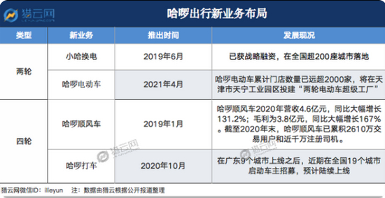 与此同时,2020年10月底,哈啰出行在原有顺风车业务、聚合打车的基础上,启动新业务“哈啰打车”,入局网约车领域,并在广东中山试运营,进一步丰富公司的移动出行生态。