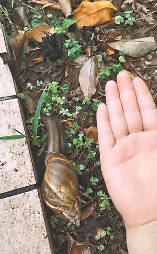 羊城晚报讯 记者梁正杰、通讯员郭子宁摄影报道:广东的盛夏暴雨频频。不少街坊发现,大雨过后,在马路边、灌木丛下常常出现一种“大蜗牛”。它是外来物种,非常脏!体内藏有大量寄生虫,可能引起致命的脑膜炎、失明等。