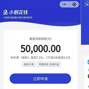 公开资料显示,小鹅花钱是微众银行于2019年推出的一款小额消费信贷产品,可以通过小鹅花钱小程序或公众号申请贷款,申请到的贷款额度可以绑定微信支付、京东支付、QQ支付、多多支付(拼多多)扫码付款。