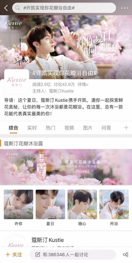 不仅如此,蔻斯汀还携手许凯发起了一场全网粉丝营销,开启#许凯实现你花瓣浴自由#传播话题,配合多重应援互动渗透粉丝圈层,话题总曝光达2.9亿+,引发42.9万次讨论,一度荣登热搜榜单,秒超当天官宣的其他热搜品牌。话题推出首日,粉丝就达成了品牌设定的福利解锁门槛,以此传达对于自身偶像的喜爱和对品牌的信任。