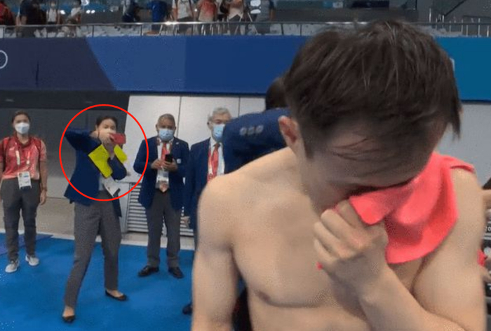 8月3日,谢思埸、王宗源在男子三米板跳水比赛中包揽冠亚军,郭晶晶冲上前拍照像极小迷妹↓↓