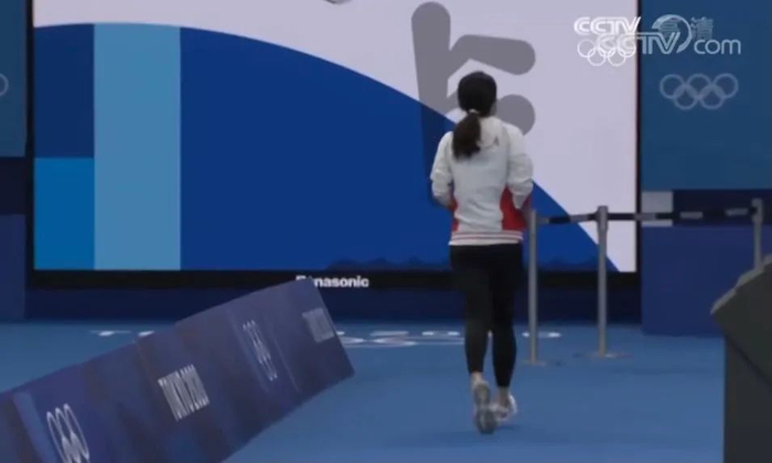 ·接受完采访,郭晶晶跑着去参加技术会议。图自央视新闻。