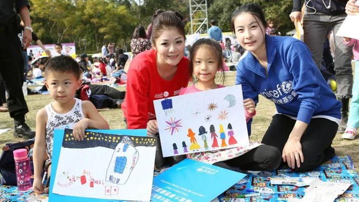 ·郭晶晶(右一)出席“中国儿童周2014—小画家大梦想绘画比赛”,呼吁公众支持“中国贫困儿童资助项目”及关注内地的妇幼健康。