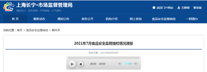 上海市长宁区市场监管局通报2021年7月食品安全监督抽检情况