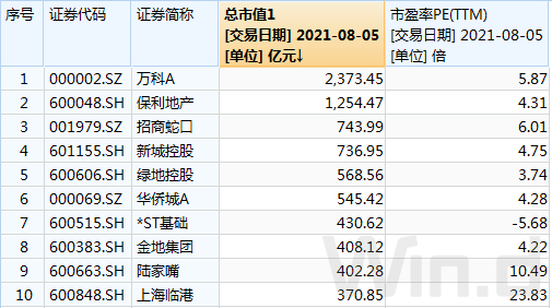 此外,市值排名前10的房企中,有7家市盈率在5倍左右,最低的绿地控股市盈率不足4倍。