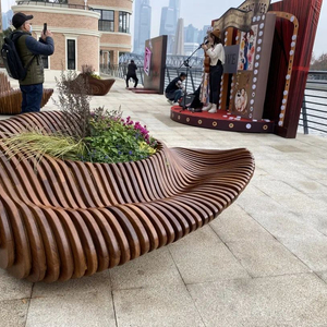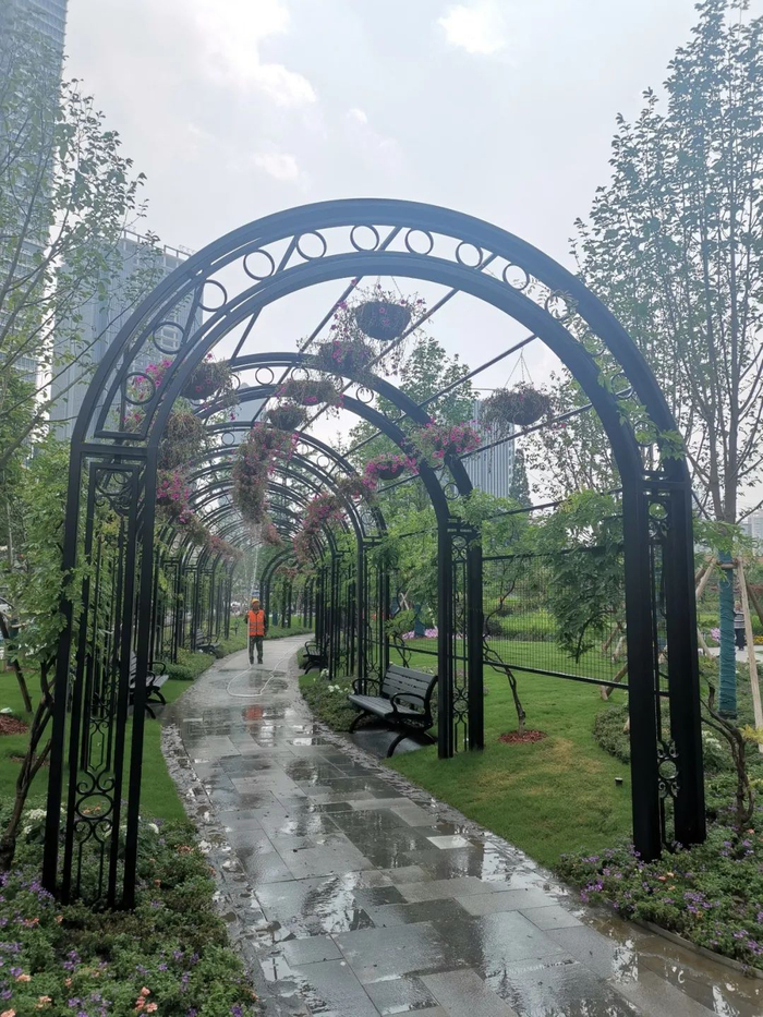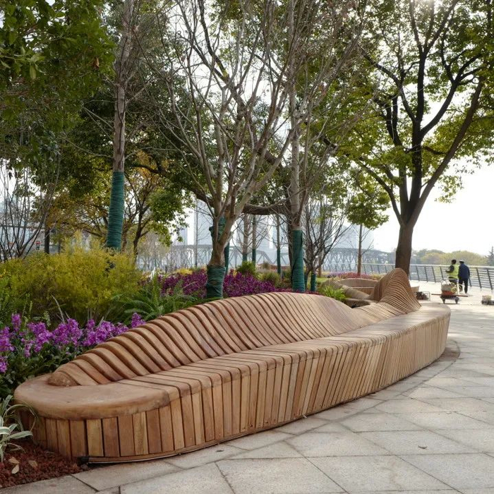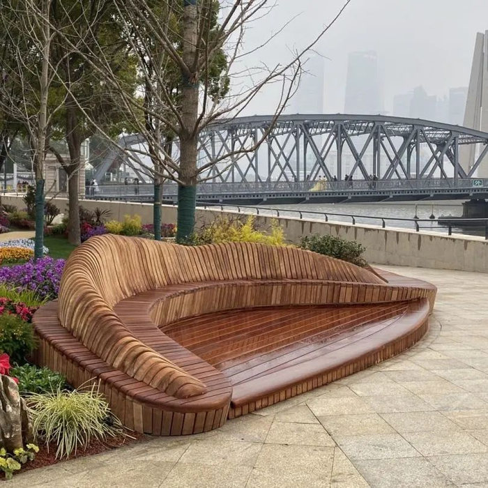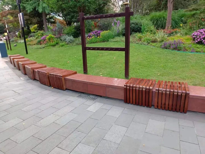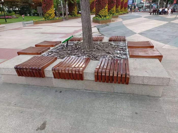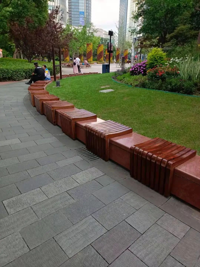 不仅如此,设计方还巧妙利用川北公园的花坛、树池挡土墙设置了100个实木座椅,为游客提供有温度的休憩空间,同时,在公园及周边增设多处特色座椅,形式及材料因地制宜,让环境富于变化。