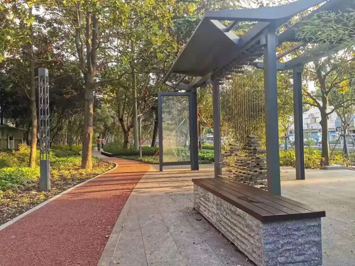 广粤路绿道建设过程中,充分征询沿线街道、居委和市民意见,在沿线设置多处整石座椅,方便居民休憩,并有效解决了周边学校接送孩子的家长缺少等候休憩空间的问题。