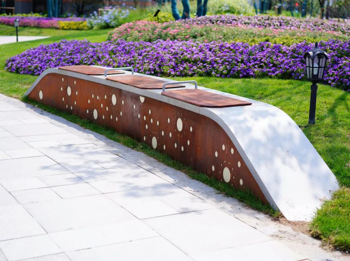 虹口作为垃圾分类“新时尚”的发源地,在别出心裁设计公共座椅造型的同时,注重融入环保理念,材质上选用环保、可回收的材料作为公共座椅的使用材料。