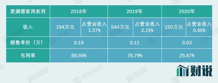 麦澜德此前已开始开发家用系列盆底刺激生物反馈仪,家用系列一体化设计,体积小,便于携带,可链接APP,商标名称是澜婷,2019年之前主要通过子公司麦豆健康进行。但2019年9月,麦澜德却与郑伟峰签订《售股协议》,以269万元将麦豆健康98%股权出售给郑伟峰。招股书解释称,2018年公司收购麦豆健康后,整合效果不及预期。从公司家用系列产品销售收入来看,2020年度销售仅为150万,毛利率仅为25.67%。