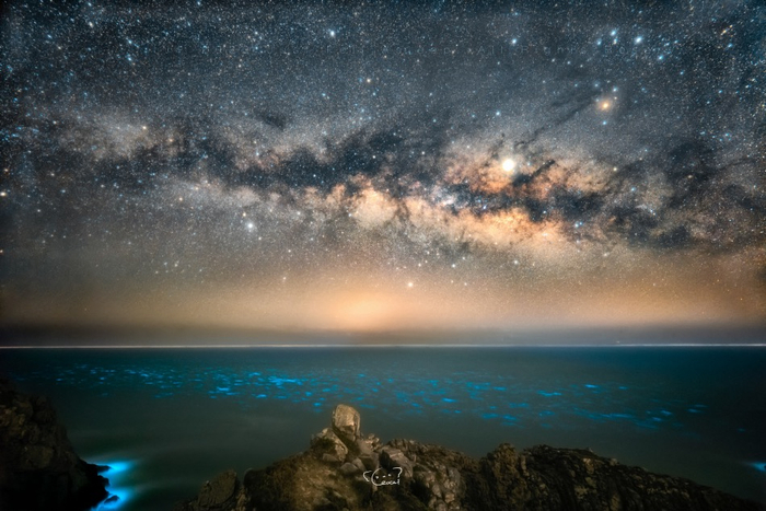 2017年的五一假期,蔡胤霖拍下了第一张星象延时摄影作品,福州平潭岛的银河。