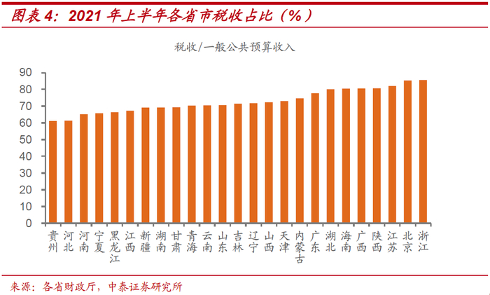 我们建议使用财政自给率指标反映各省份财政收支情况。财政自给率=一般公共预算收入(本级税收+非税收入)/一般公共预算支出。