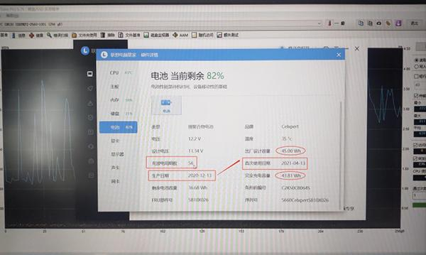 张先生称,他通过电脑自带的软件“联想电脑管家”查看到,他新购买的这台电脑出厂日期为2021年3月16日,其电池首次使用日期为2021年4月13日。据“联想电脑管家”的电池分析结果显示,该电脑的充放电周期数为56次。