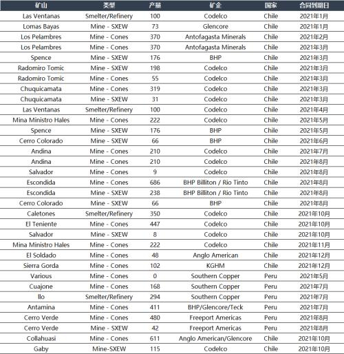表3:2021年南美铜矿劳资合同到期时间