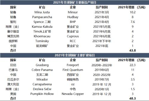 表1:2021年全球铜矿新投/扩建项目