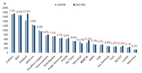 图1:2020年全球矿企铜产量排名(kt)