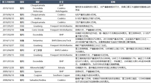 表2:历史铜矿影响较大的罢工事件