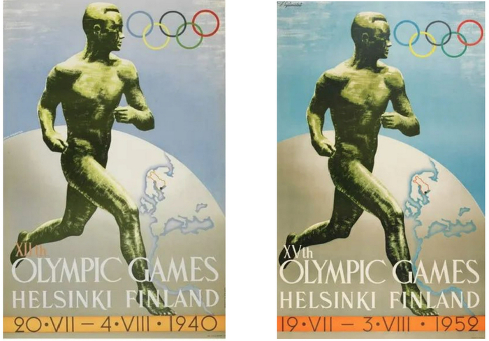1940年和1952年为赫尔辛基奥运会设计的海报