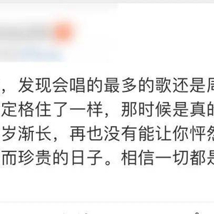 “最近去KTV,发现会唱的最多的歌,还是周杰伦的。年岁渐长,再也没有能让你怦然心动的歌词。”