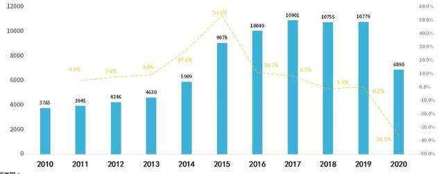 数据显示,截至2021年3月,我国现存的KTV企业只剩下6.4万家。