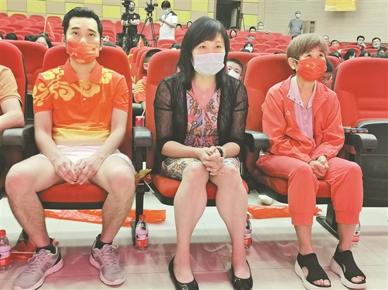 张敏、罗绍伦是樊振东在广东体育职业技术学院学球期间的启蒙带训教练,6日晚,他们和广东体育职业技术学院的运动员们一起观赛,为樊振东加油。在男双马龙/许昕之后出场的樊振东在对阵奥恰洛夫时丢掉第一局,现场气氛顿时变得紧张。幸好“小胖”顶住了压力,为中国队拿下这关键的一分。