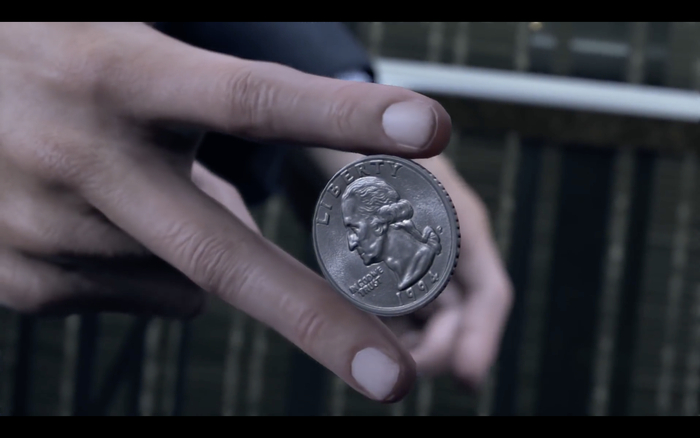 一开始,我们将在屏幕上看见一位金发碧眼的CG女性头像,她告诉我们,一场名为“底特律”的“体验”即将开始。她是一位仿生人(android),也是本次体验的主持人(host),或可操作的主机(host)及界面。接着,她提醒我们:“这不只是一个虚构故事,也是我们的未来。”“我们”是谁?这是游戏从一开始抛出的最大难题。黑屏之后的字幕点明了故事发生在2038年8月15日。接下来,从黑暗中浮现出一位男性的背影,穿着印有仿生人和编号RK800字样的外套,他在等电梯,看似有点不耐烦,手上不停玩着抛硬币的游戏。其脸部的大特写展现其逼真的毛孔和毛发,似乎向我们保证,这场体验将提供高度写实的视觉体验,另一方面也暗示了这个虚拟世界的设定,即仿生人具有相当真实的人类外表和举止;另一个值得我们注意的特写镜头是:当电梯到达时,硬币停在其右手的食指和中指之间,这是一枚1994年的5美分硬币,刻有LIBERTY、IN GOD WE TRUST字样以及美国国父、《独立宣言》的起草人之一托马斯.杰斐逊(Thomas Jefferson)的头像——这个镜头构建了我们这些体验者与一个名为“底特律”的虚拟世界之间的桥梁,提供了一种朝向未来的历史感。