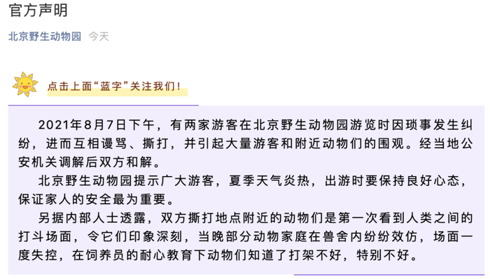 人类没给动物做好榜样!对于北京野生动物园的声明