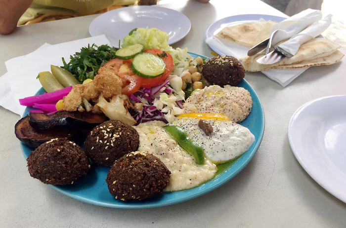跨过约旦河,便到达了以色列和巴勒斯坦地区。在地中海小城阿卡,我误打误撞地吃到了纯素豪华版皮塔饼:打开柔软蓬松的皮塔饼,往里面塞入刚刚炸好的“法拉费”,(混合了鹰嘴豆、蔬菜和香料制成的炸丸子)再舀上一勺鹰嘴豆泥,趁着皮塔饼还没有被撑爆之前,再见缝插针的塞进黄瓜丝、番茄块、欧芹碎。咬上一口,蔬菜清香、丸子香脆、酱汁醇厚。