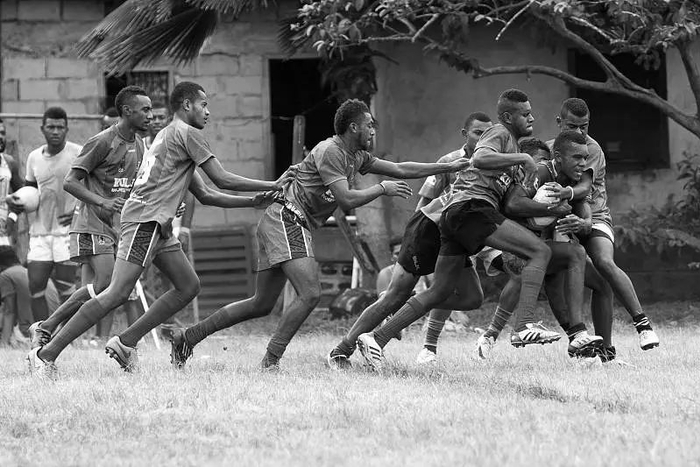 斐济是橄榄球大国,89万人口中有8万注册橄榄球运动员。不过,环游世界、吃住在酒店,在拉斯维加斯、开普敦和香港坐满观众的体育场里打球,这是国际球员们的日常,跟斐济球员们的成长环境是两个世界——后者大多在十五六岁时辍学,一边做着农民、士兵、狱警等工作,一边在高风险、高节奏、缺乏科学训练的街头比赛上寻求被看到的机会。
