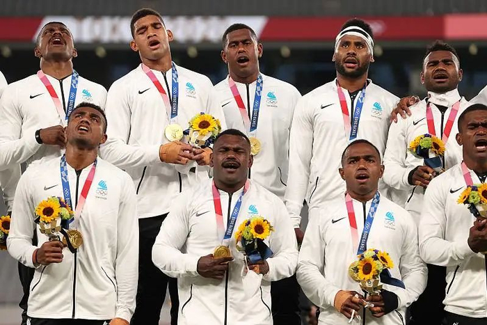 2016年里约奥运会首次设立了七人制橄榄球项目,面对新西兰、澳大利亚和英国等强手,斐济男子队过关斩将夺得金牌,这也是斐济有史以来第一枚奥运奖牌。东京奥运会前,他们已经有16个月没有参加国际大赛,7月28日赢得决赛、再度夺金后,唱完国歌的斐济队齐声合唱起福音赞歌《超越自己(E Da Sa Qaqa)》。这次胜利也让疫情肆虐中的小岛为之振奋。