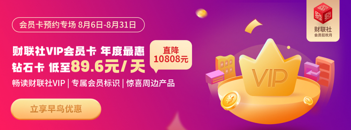 8月6日至8月31日期间,预约财联社VIP会员卡可享万元优惠:钻石会员卡直降10808元,黄金会员卡直降6536元,白银会员卡直降3796元!